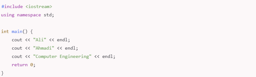این برنامه ساده ترین شکل یک برنامه ++C است.